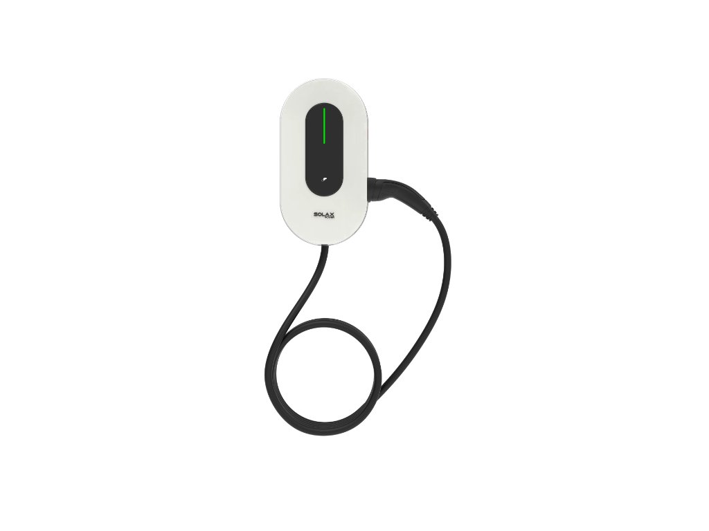 Chytrý wallbox SolaX 22 kW s kabelem pro elektromobily s podporou fotovoltaiky (FVE), WiFi připojením a automatickým přepínáním fází 1f/3f. Umožňuje nabíjení až 100 % z přebytků solární energie a nabízí dynamické řízení výkonu i RFID autorizaci.